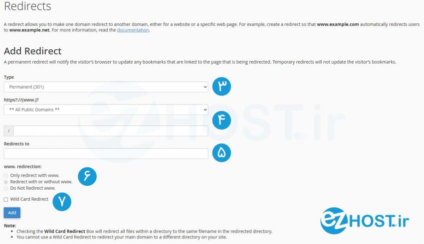 ).در فیلد “Redirects to”، آدرس کاملی که میخواهید کاربران و موتورهای جستجو به آن هدایت شوند را وارد کنید. حتماً پروتکل http://